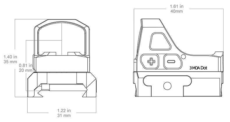 - Размер Точки 3 MOA: размер точки в 3 угловые минуты (MOA) обеспечивает хороший баланс между скоростью захвата цели и точностью стрельбы. Он идеально подходит как для спортивной стрельбы, так и для самообороны, оставаясь четким и точным на ближних и средних дистанциях.