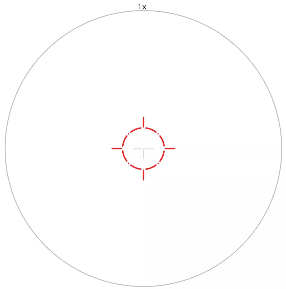 Сетка AM1102 расположена в первой фокальной плоскости и представляет собой прерывистый круг с засечками под углом 90°, внутри которого расположена T — образная разметка для ввода поправок и прицельная марка. Окружность дает возможность быстро захватить цель и выстрелить навскидку при стандартном оптическом увеличении.
