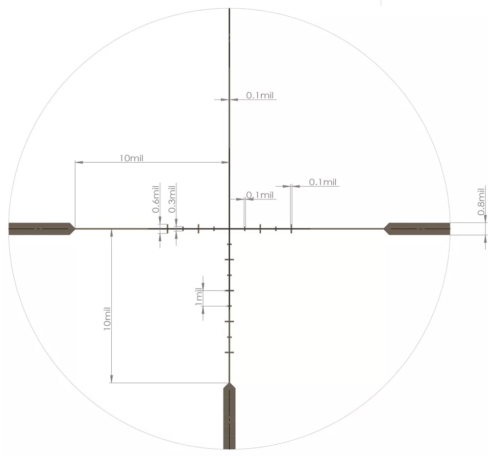 Прицельная сетка AMS1-10x представляет собой классическое перекрестие с вертикальными и горизонтальными маркерами для ввода поправок. Располагаясь во второй фокальной плоскости, сетка сохраняет неизменные масштабы на всем диапазоне кратности и исключает перекрытие даже мелкомасштабных целей.Оптоволоконная система подсветки Fiber незаметна в выключенном состоянии и идеально фокусирует свет в центральной точке при активации. 11 уровней яркости позволяют гибко настраивать подсветку под конкретные условия стрельбы, а промежуточные положения «0» дают возможность одним движением выключить подсветку и также быстро вернуться к последнему уровню яркости.