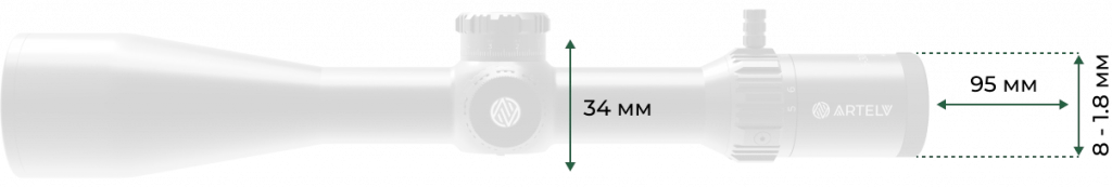 Конструкция оптического прицела с 34-миллиметровой центральной трубкой выгодного выделяется более широкой окулярной частью для быстрого и комфортного прицеливания. Выходной зрачок 8-1.8мм предусматривает безопасное удаление на 95мм, позволяя в считанные секунды захватить цель без необходимости вплотную прижимать глаз к окуляру. Универсальный посадочный диаметр прицела 34мм исключает трудности подбора монтажных колец, а расширение окулярной части способствует еще более комфортной и продуктивной охоте.