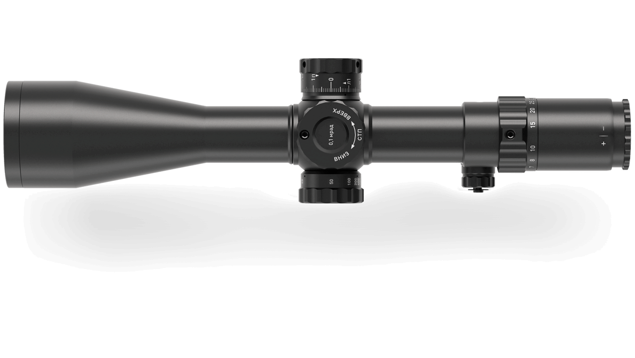 Высокоточный надежный механизм ввода поправок имеет большой диапазон, оборудован системой упора на «0» и обеспечивает четкий, хорошо ощутимый щелчок, даже в перчатках. Прицел имеет высокопрочный корпус из алюминиево-магниевого сплава, герметичен, заполнен осушенным азотом, что препятствует образованию конденсата и запотеванию линз. Уверенно выдерживает экстремальные условия и отдачу крупных калибров (.338 LM, .408 CT, .50 BMG) на тысячи выстрелов.