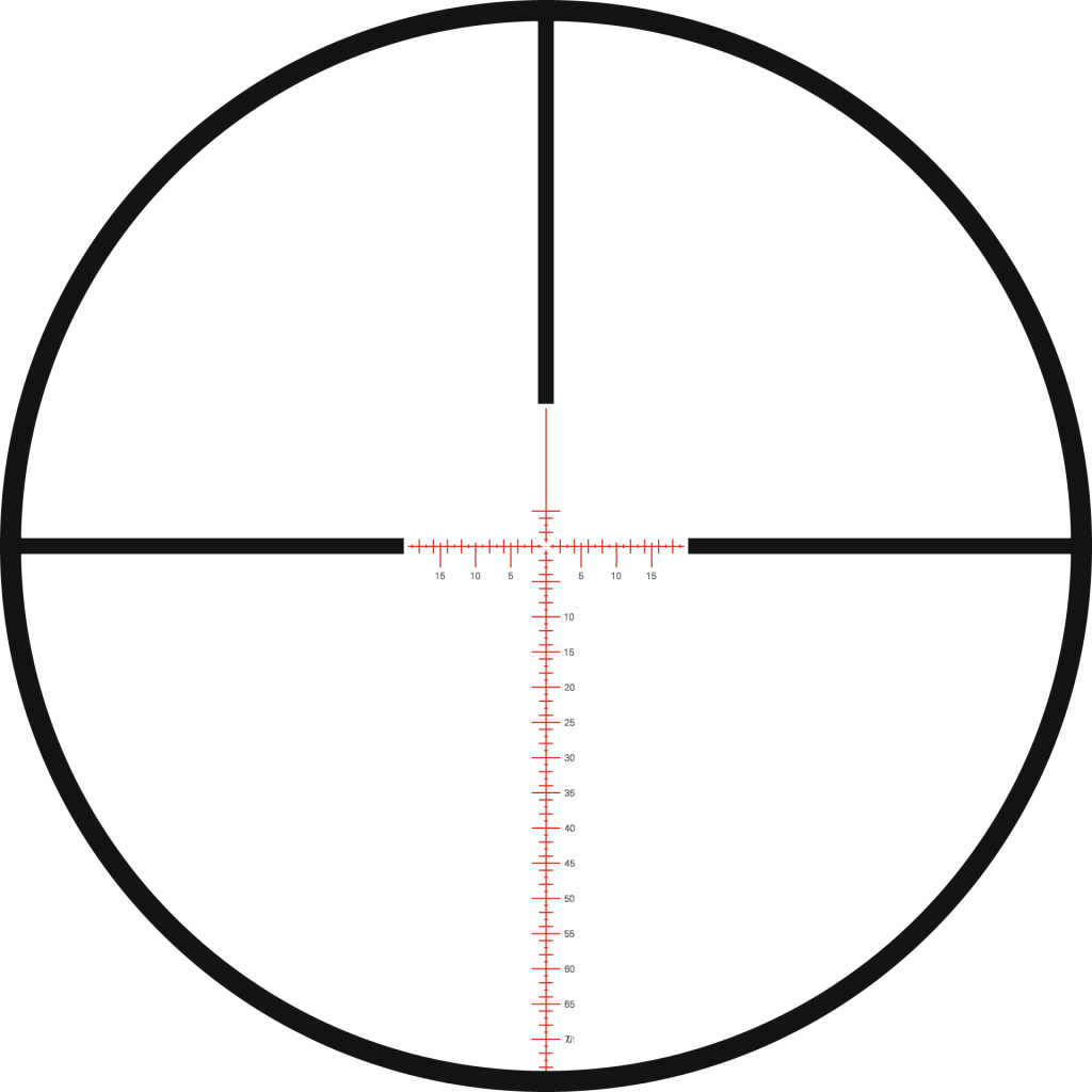 Прицельная марка, находящаяся в плоскости объектива (в первой фокальной плоскости) изменяет свои размеры при изменении кратности увеличения. При этом угловые размеры элементов прицельной марки остаются неизменными и их можно использовать для измерения дистанции на любой кратности.