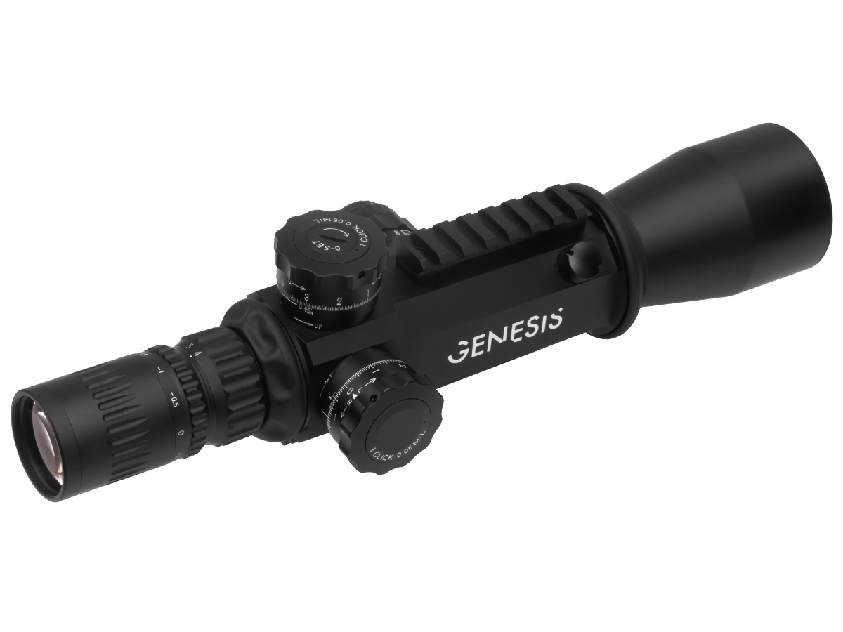 Прицел March Genesis это не обычный оптический прицел. Классические оптические прицелы для винтовок спроектированы и изготовлены с внутренним узлом, который перемещает прицельную сетку и изображение при введении поправок. При стрельбе на дальние дистанции и введении сильных поправок поле зрения смещается достаточно далеко от оптической оси прицела, что снижает разрешение и качество изображения. К сожалению, именно на больших расстояниях стрелку требуется наилучшая чёткость. Стрелки на дальние дистанции часто используют планку с наклоном, например 20MOA при установке прицела не только для лучшей регулировки по вертикали, но и для того, чтобы держать прицельную сетку как можно ближе к оптической центральной оси линз. В прицеле March Genesis сетка остается неподвижной, поэтому она всегда оптически центрирована внутри внутреннего линзового узла прицела, что обеспечивает максимальную оптическую чёткость и отсутствие визуальных искажений в любых условиях.
