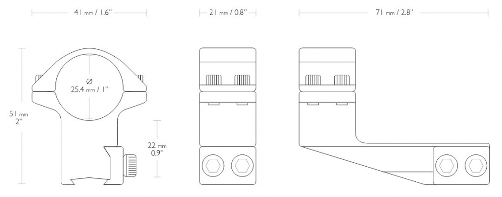 Кольца с экстра выносом Hawke диаметром 25.4 мм. Крепление колец производится на призму 9-11 мм. Кольца высокого профиля, высота BH составляет 22 мм. Кольца изготовлены из высококачественного анодированного алюминия.