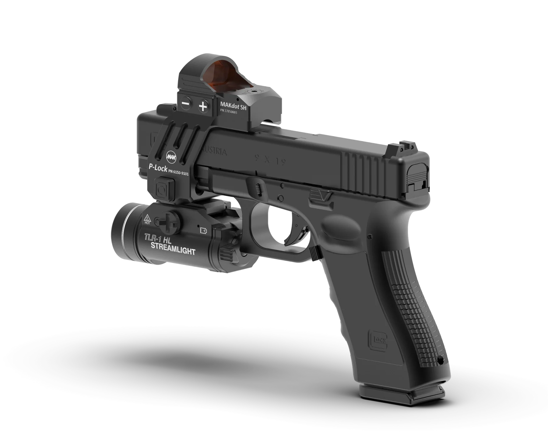 Кронштейн MAK P-Lock для установки прицела MAKdot SH и других прицелов с крепежной площадкой Docter на пистолет GLOCK 17/19/22/31/34/35 (3 и 4 генерации)