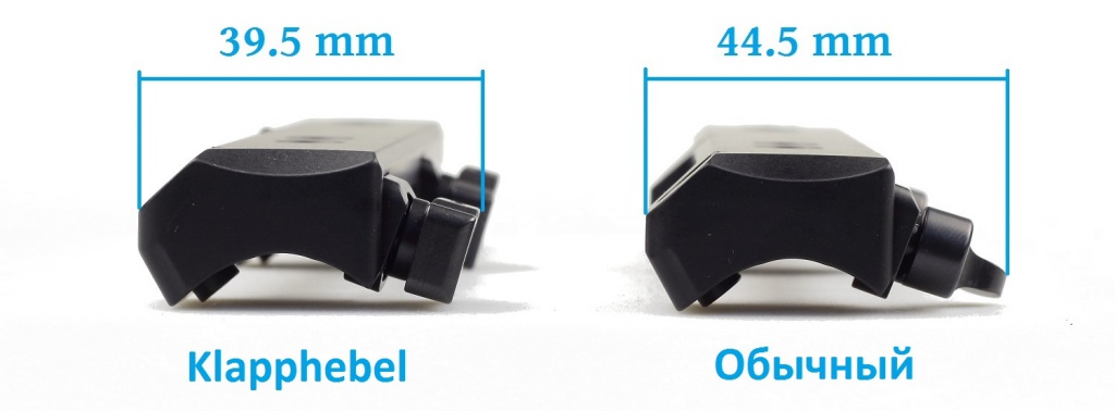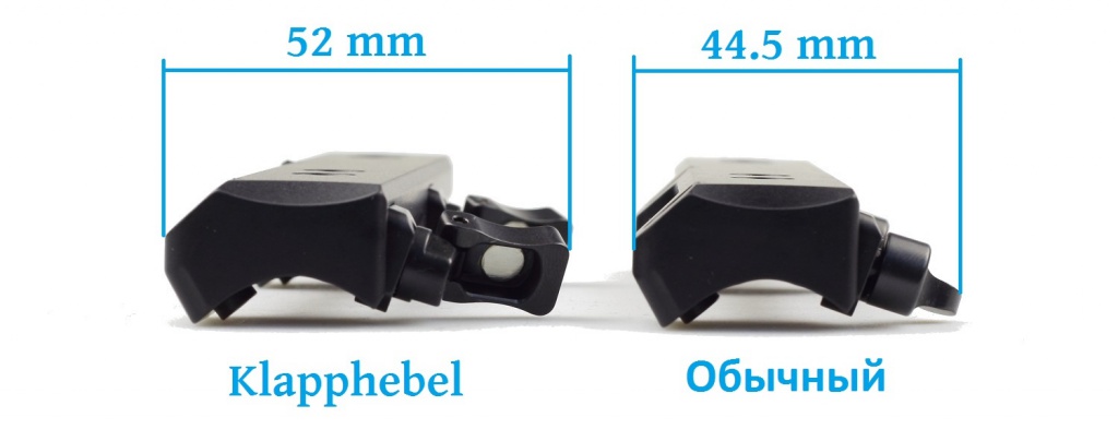 Главной отличительной особенностью замков Klapphebel является уменьшение выступающей части кронштейна за ствольную коробку оружия, когда замки закрыты.