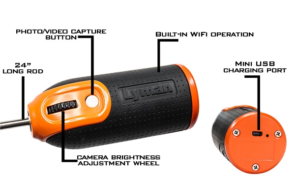 Новый бороскоп Lyman Borecam Pro выводит осмотр ствола на совершенно новый уровень! Беспроводная камера Borecam производит собственный сигнал Wi-Fi, который отправляет сверхчистые и детализированные изображения прямо на ваш телефон. Никакие провода или мониторы не мешают во время использования. Тщательно осмотрите свои отверстия на предмет износа, эрозии горловины, следов инструментов и других повреждений нарезов, а также отложений меди или свинца. Borecam Pro подходит для стволов калибра 20 и более и теперь оснащен более длинным 24-дюймовым стержнем. Borecam Pro теперь не только снимает фотографии, но и делает резкие и четкие видео. Простое в использовании приложение Borecam Pro упрощает хранение и извлечение фотографий и видео. Приложения доступны для телефонов и планшетов iOS и Android.